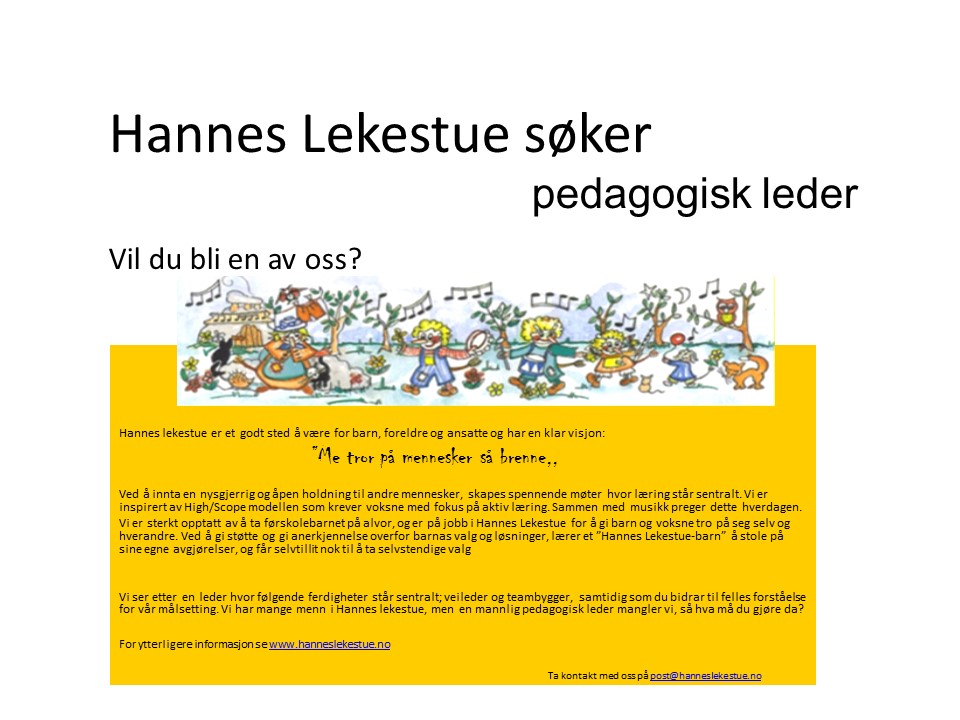 Vi på jakt etter ny pedagogisk leder i barnehagen vår, er du den vi ser etter?